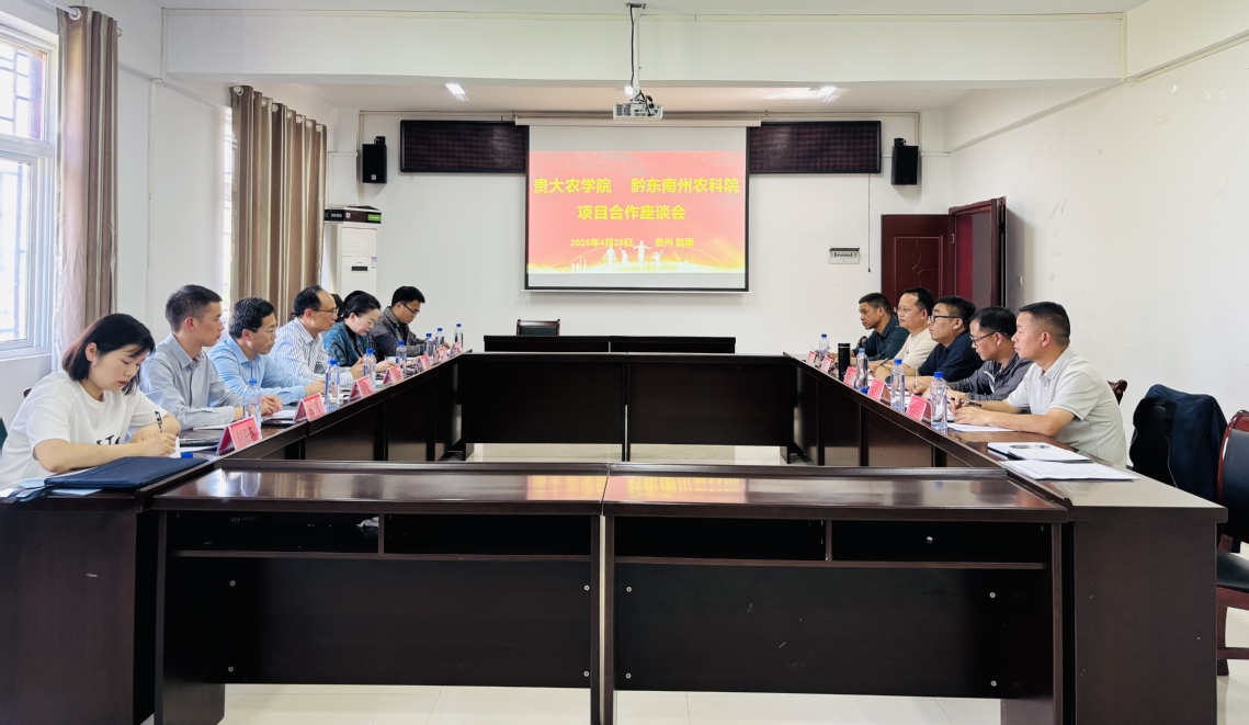 4月28日下午,农学院党委书记冉龙彪、副院长(主持工作)张万萍、水稻研究院院长赵全志一行7人赴黔东南州农业科学院洽谈项目合作工作事宜。会议由黔东南州农科院院长范刚强主持,黔东南州农科院副院长龙九洲、总农艺师杨昌元、科研处处长潘宗东、水稻所所长浦选昌等同志参会。